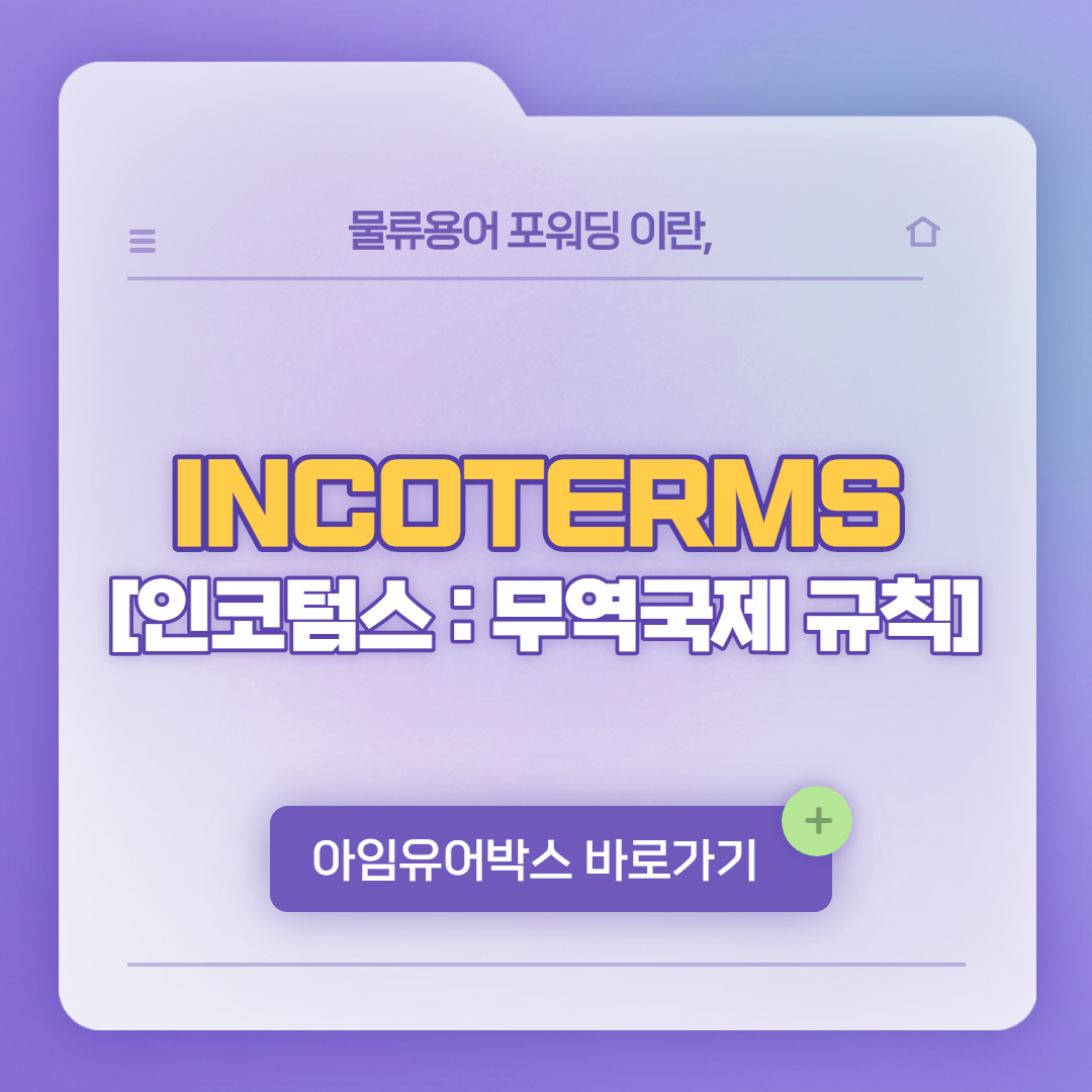 아임유어박스에서는 오늘 포워딩 업무에서 자주 쓰이는 인코텀스(무역국제 규칙) 무역용어 등에 대하여 총정리 해드리도록 하겠습니다. 무역에 쓰이는 인보이스에는 보통 약어들로 적혀있어서 업무를 진행하지 않는 전문가가 아니면 그 용어를 제대로 해석하기란 여간 어려운게 아니랍니다. 그렇기 때문에 오늘은 포워딩 업무에서 사용하는 약어들에 대한 설명을 해드리고자 합니다.