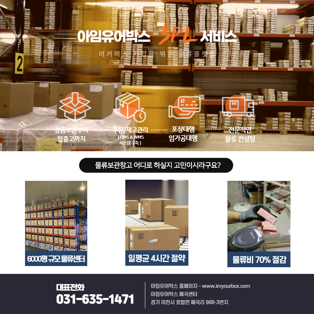 아임유어박스 IMYOURBOX 에서 피킹불류방법에 대하여 알아보았습니다. 물류대행 (3PL)과 관련된 자세한 물류상담을 원하실 때에는 대표번호 031-635-1471 통해 자세한 물류전문 컨설팅을 진행해드리고 있습니다. 또한 카카오톡 채널 [아임유어박스]를 통해서 손쉬운 상담이 가능해졌습니다. 15년차 원스톱 풀필먼트 서비스에 대해 궁금하시다면 아래의 링크를 통해 간단한 견적 및 상담 받아보시는 것을 권해드립니다. 물류의 모든 것을 아임유어박스에서 도와드리겠습니다. 비즈니스의 성장을 함께 하세요!